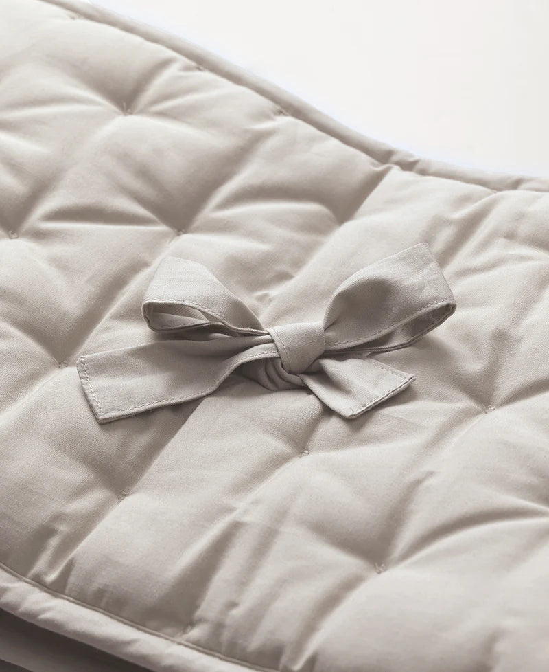 Create a comforting and serene space for your baby with the Cot Bumper – a perfect blend of practicality and poetic design. With its elegant quilted texture and delicate ribbons, this half-length bumper adds both charm and protection to your baby’s crib. It offers just the right amount of padding to shield little limbs, while maintaining airflow for a safe sleep environment.